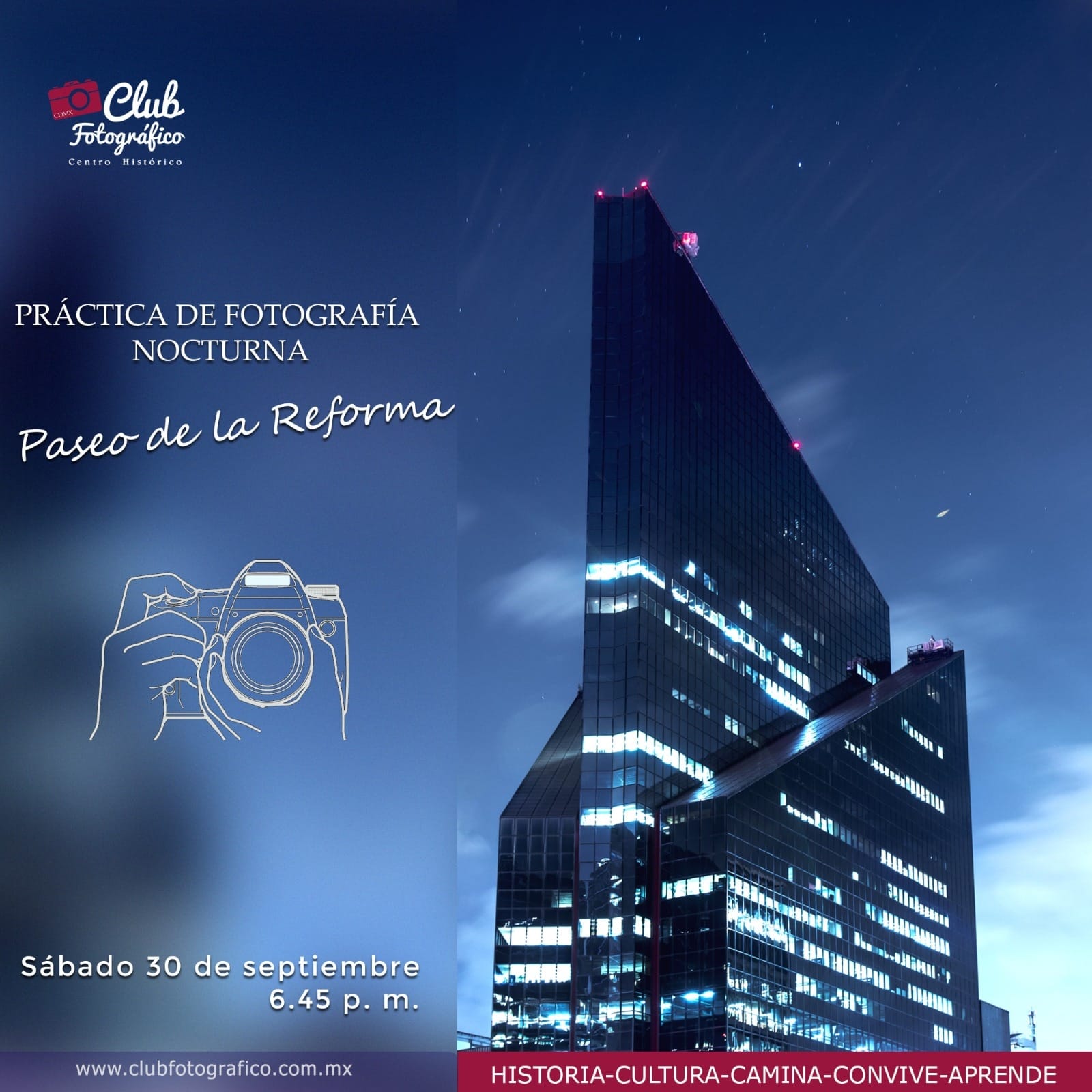 Próximo evento Lleva tu tripié y hagamos larga exposición este sábado 30 de septiembre 6:45 p.m. $250 por persona o $200 por persona con credencial vigente del Club Days Hours Minutes Más información Recorrido Nocturno Centro Histórico Recorrido fotográfico Nonoalco – Santa María la Ribera Recorrido fotográfico – Barrio de La Merced